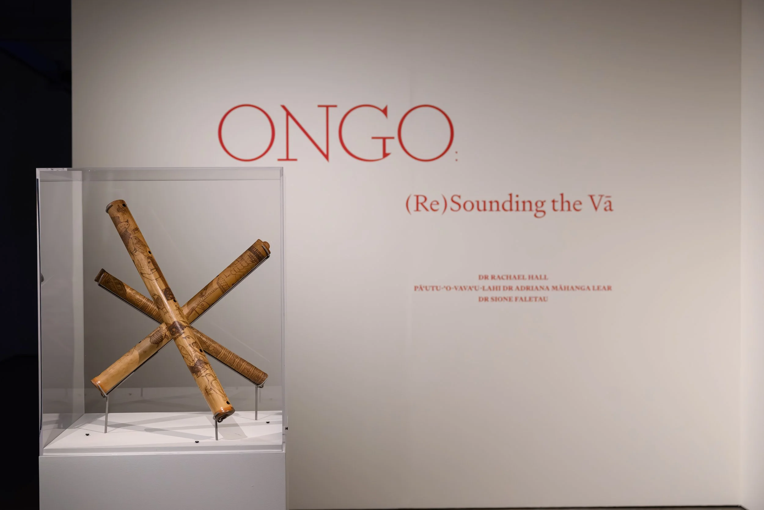Ongo: (Re)sounding the Vā brings ancient Tongan music traditions, instruments and sonic pathways into the present, giving voice to ancestral ways of being, knowing and doing. Grounded in ongo, a Tongan concept encompassing sound, hearing and embodied feeling – the works engage in dialogue with archival collections, language and the fonua (people and environment) to navigate resonant futures. Central to the exhibition is the fangufangu, the Tongan bamboo nose flute. The artists work in close relationship with three fangufangu from Te Papa’s Pacific collection. Through practices of design, making, composition and performance, these practices extend across sonic, visual and material forms, activating a relational space (vā) that reaches beyond the present, into both ancestral pasts and unfolding futures.
